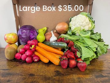 Our $35 produce box features a curated selection of approximately 10 to 14 varieties of fresh, seasonal fruits and vegetables. If any seasonal products are unavailable, we will substitute them with other items to ensure your needs are met. These boxes focus on affordability and variety, tailored to fit the needs of our customers.